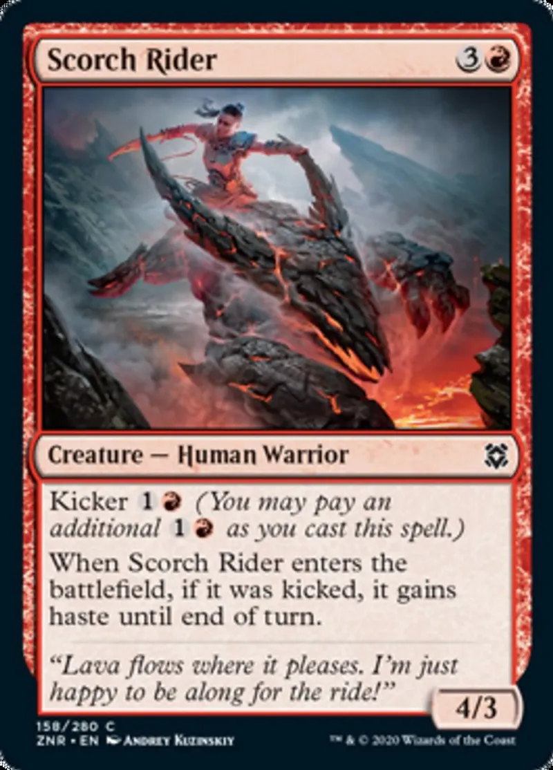 Scorch Rider is a common in the set Zendikar Rising.