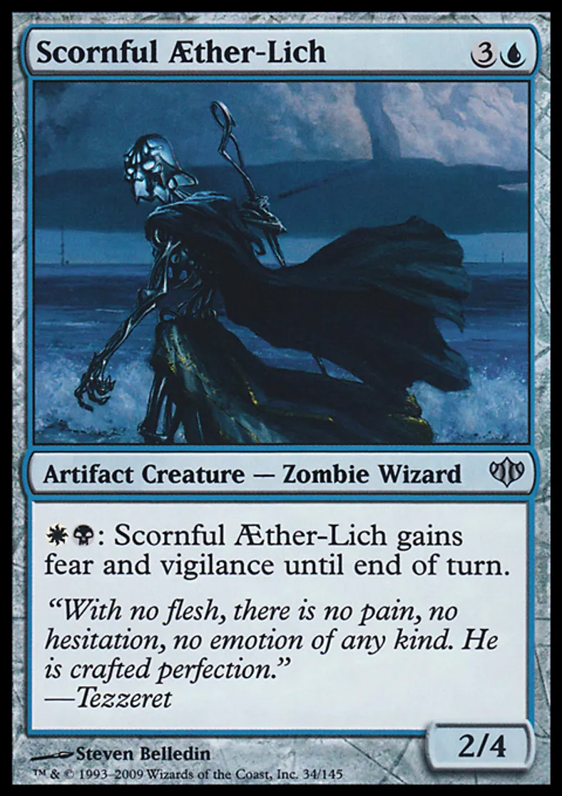 Magic: the Gathering (mtg) Uncommon Artifact Creature - Zombie Wizard Scornful AEther-Lich from Conflux (CON) last updated 2026-02-21 17:47:37