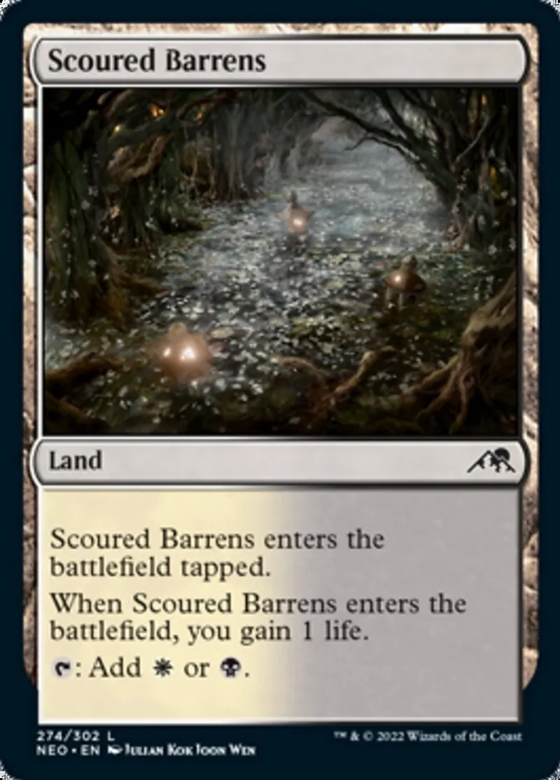 Scoured Barrens is a Common in the set Kamigawa: Neon Dynasty.
