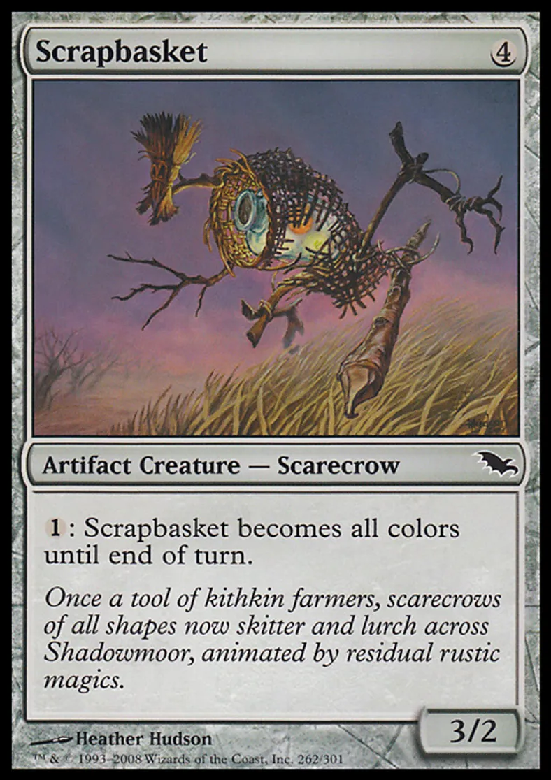 Magic: the Gathering (mtg) Common Artifact Creature - Scarecrow Scrapbasket from Shadowmoor (SHM) last updated 2026-02-24 15:54:32