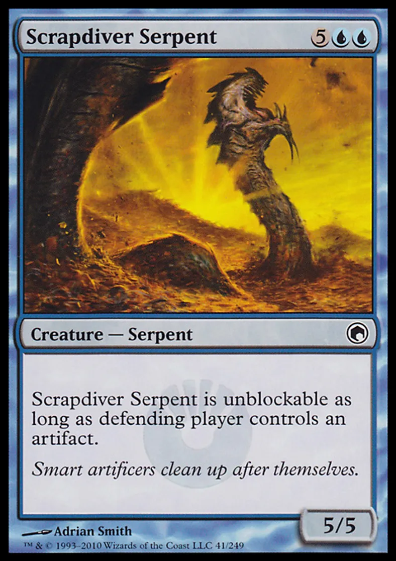 | Oracle Text | Scrapdiver Serpent is unblockable as long as defending player controls an artifact. | ||