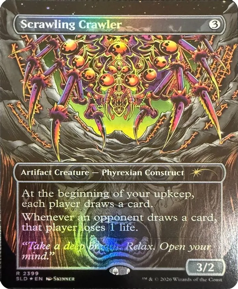 Magic: the Gathering (mtg) Rare artifact creature — phyrexian construct Scrawling Crawler from Secret Lair Drop Series (SLD) last updated 2026-04-08 04:36:47