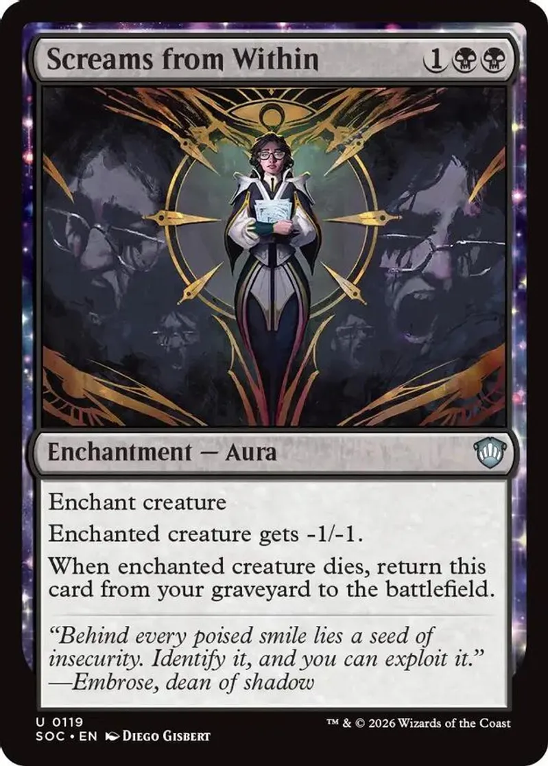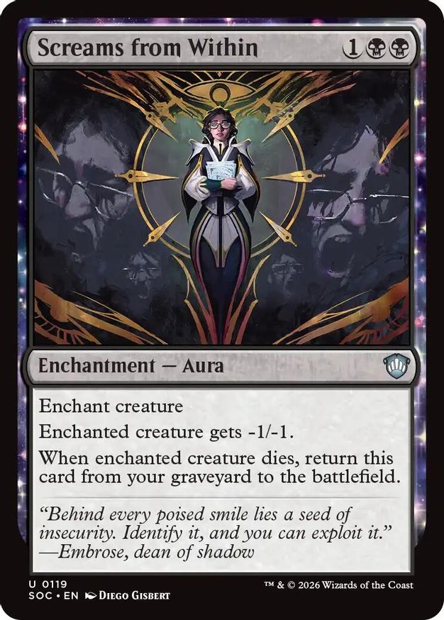 Magic: the Gathering (mtg) Uncommon enchantment — aura Screams from Within from Commander: Secrets of Strixhaven (SOC) last updated 2026-04-17 00:16:39