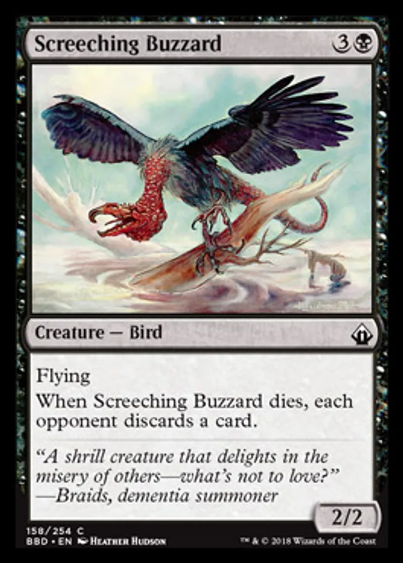 | Oracle Text | Flying When Screeching Buzzard dies, each opponent discards a card. | ||