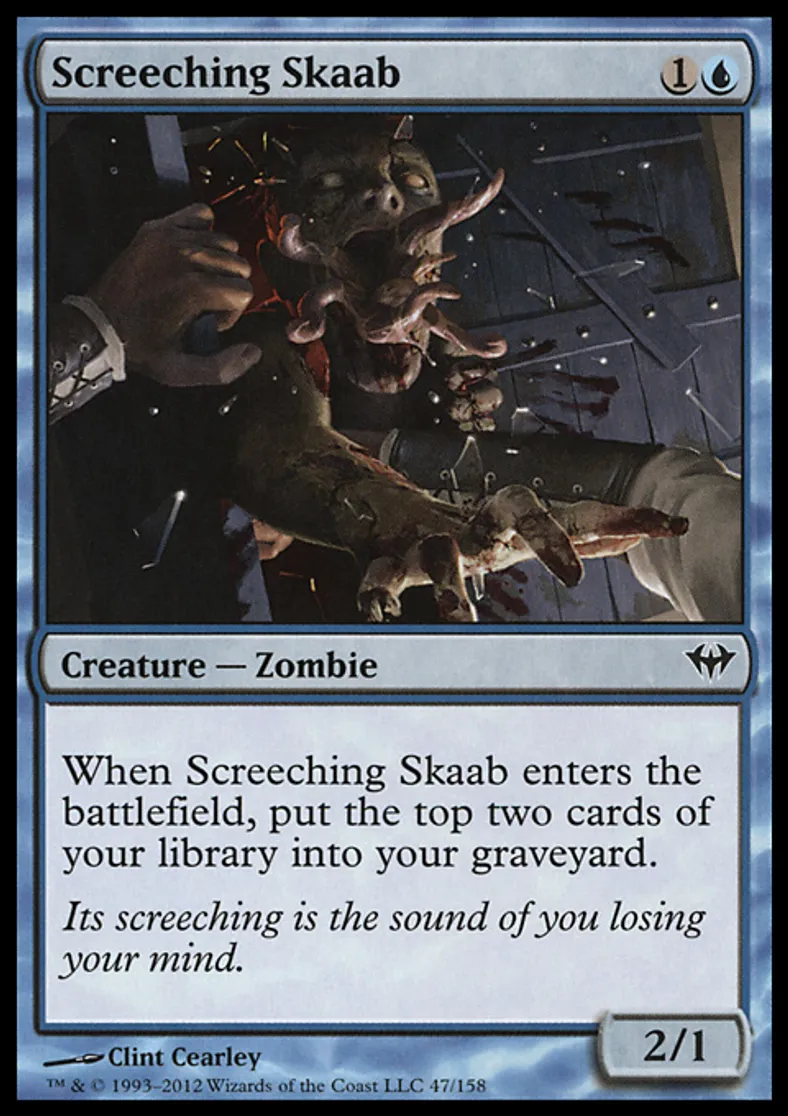 | Oracle Text | When Screeching Skaab enters the battlefield, put the top two cards of your library into your graveyard. | ||