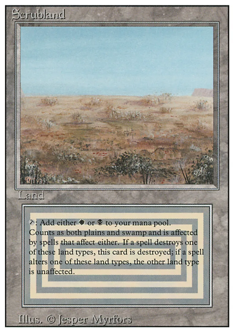 Magic: the Gathering (mtg) Rare Land - Plains Swamp Scrubland from Revised Edition (3ED) last updated 2026-02-07 14:44:02