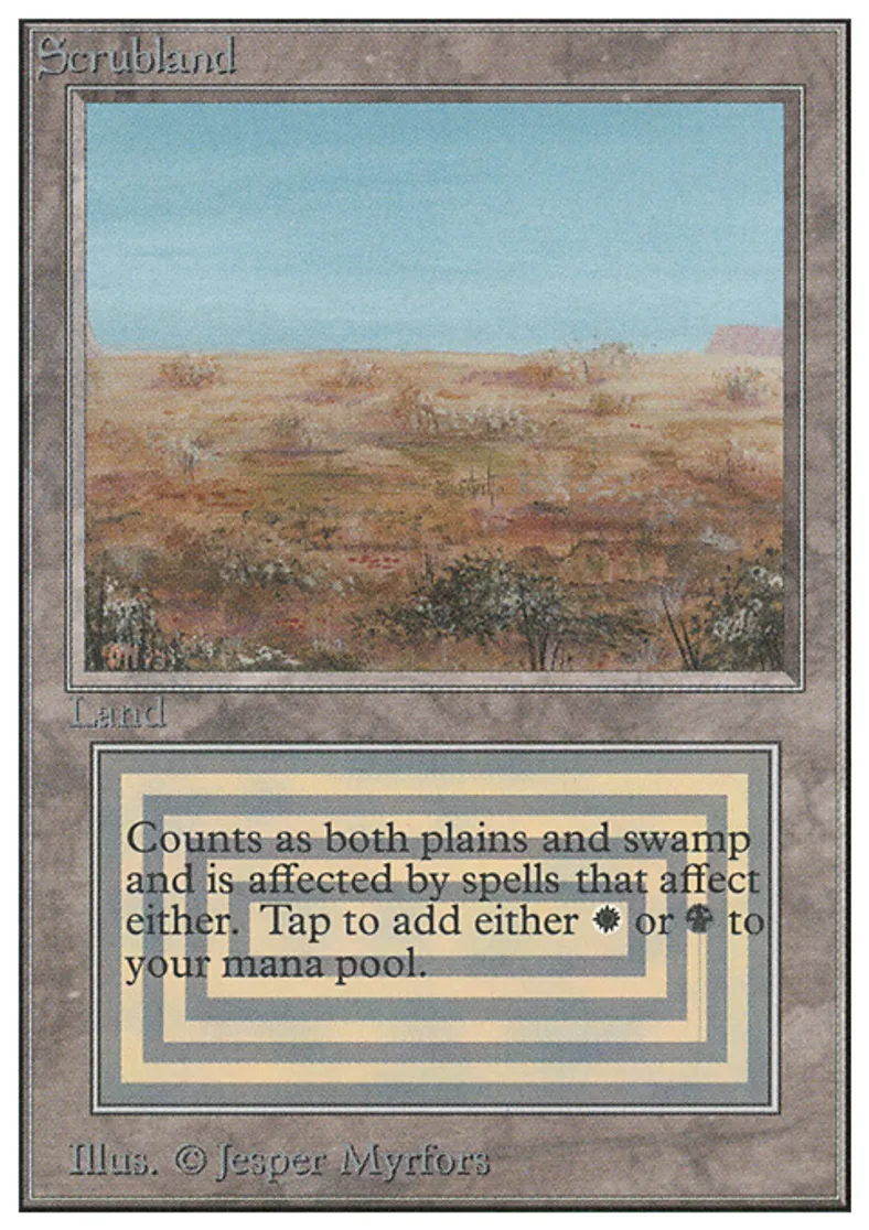 Magic: the Gathering (mtg) Rare Land - Plains Swamp Scrubland from Unlimited Edition (2ED) last updated 2026-02-07 14:43:32