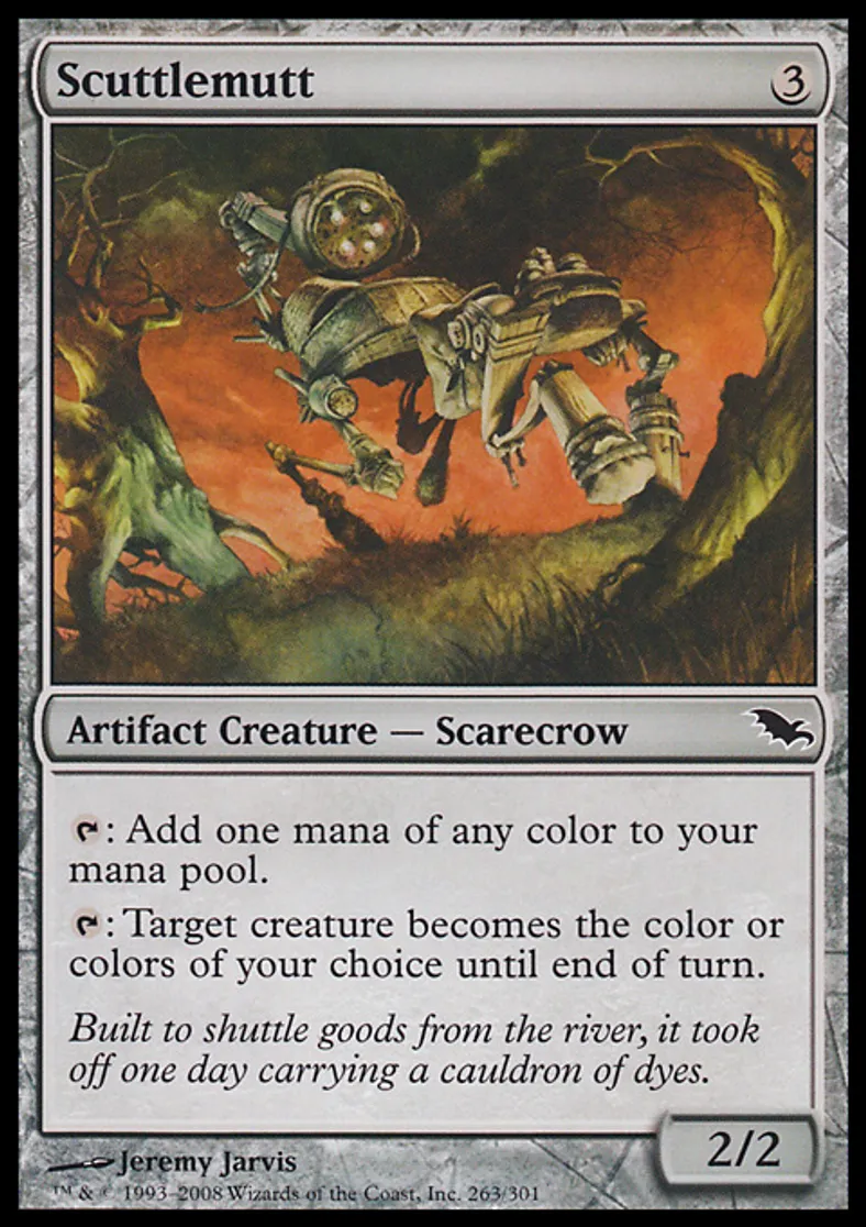 Magic: the Gathering (mtg) Common Artifact Creature - Scarecrow Scuttlemutt from Shadowmoor (SHM) last updated 2026-02-24 15:54:32