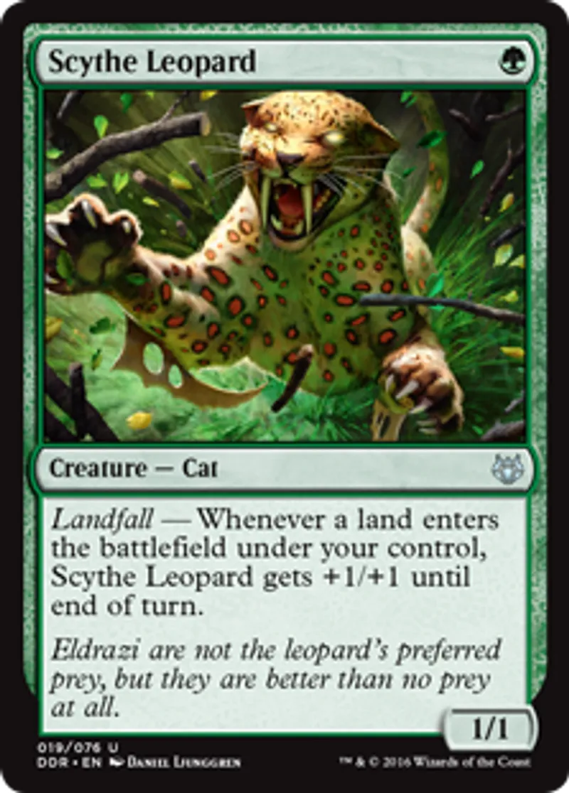 | Oracle Text | Landfall — Whenever a land enters the battlefield under your control, Scythe Leopard gets +1/+1 until end of turn. | ||