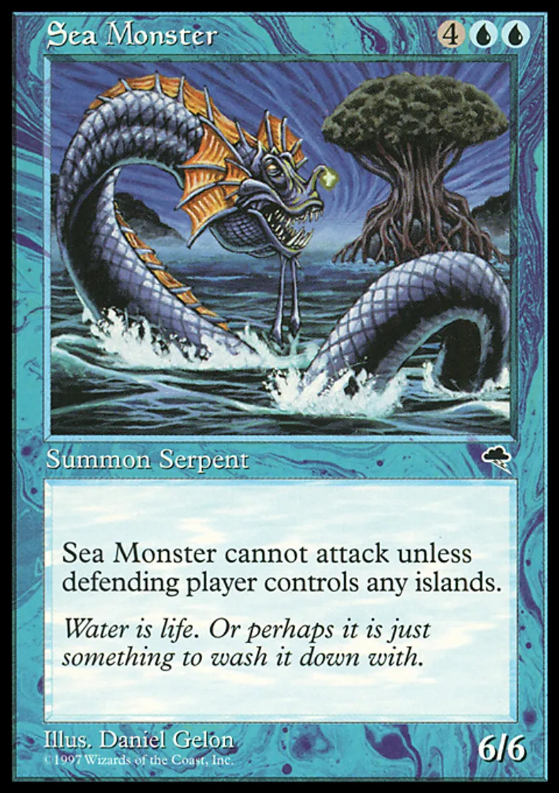| Oracle Text | Sea Monster can't attack unless defending player controls an Island. | ||