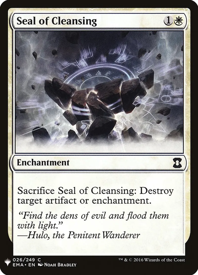 Magic: the Gathering (mtg) common Enchantment Seal of Cleansing from Mystery Booster (mb1) last updated 2026-02-21 17:04:32