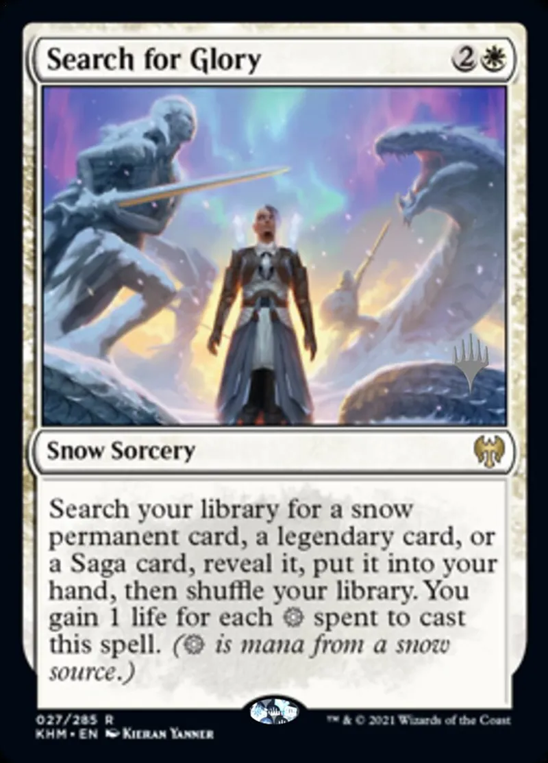 Magic: the Gathering (mtg) rare Snow Sorcery Search for Glory from Promo Pack: Kaldheim (pKHM) last updated 2026-02-24 15:30:32