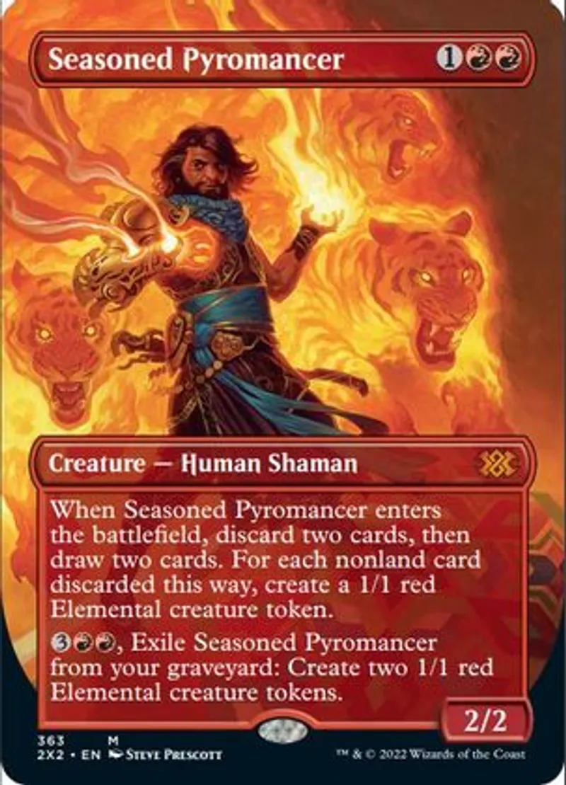 Seasoned Pyromancer (Borderless) is a Mythic Rare in the set Double Masters 2022.