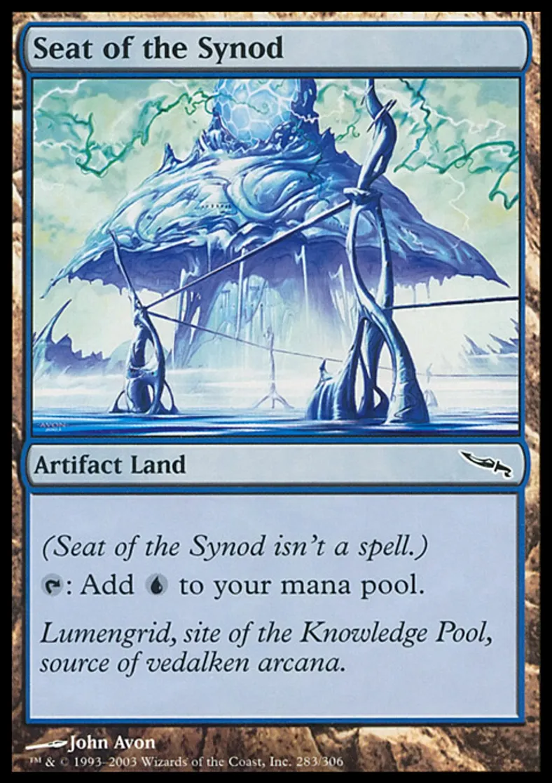 | Oracle Text | (Seat of the Synod isn't a spell.) {{t}}: Add {{u}} to your mana pool. | ||