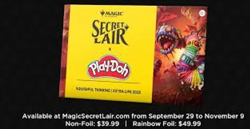 Secret Lair teamed up with Play-Doh for Extra Life 2025 because, like Magic, it's all about creativity and joy—Play-Doh is also the most requested toy for kids in hospitals. Together, we turned hand-sculpted Play-Doh into Magic cards to celebrate play, imagination, and the great work Extra Life makes possible.