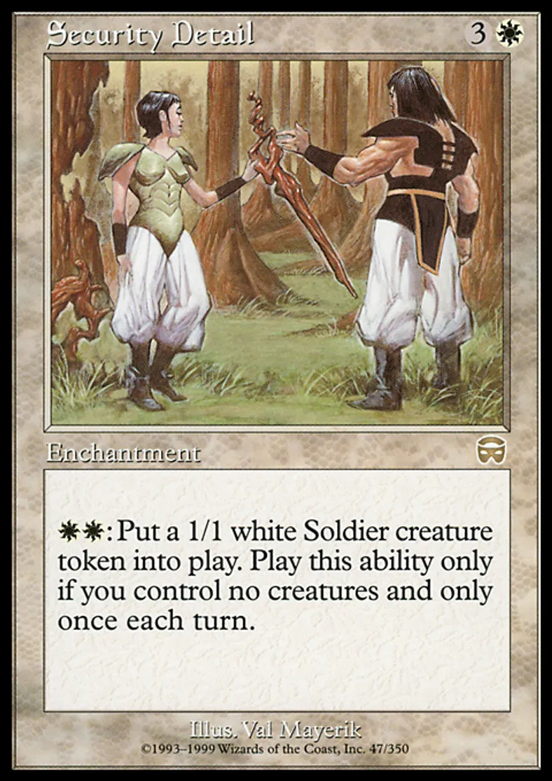 Magic: the Gathering (mtg) Rare Enchantment Security Detail from Mercadian Masques (MMQ) last updated 2026-02-16 14:45:02