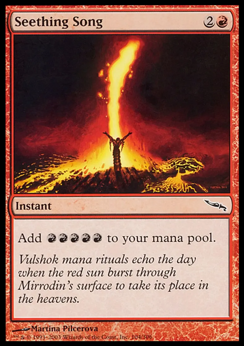 Magic: the Gathering (mtg) Common Instant Seething Song from Mirrodin (MRD) last updated 2026-02-24 15:51:04