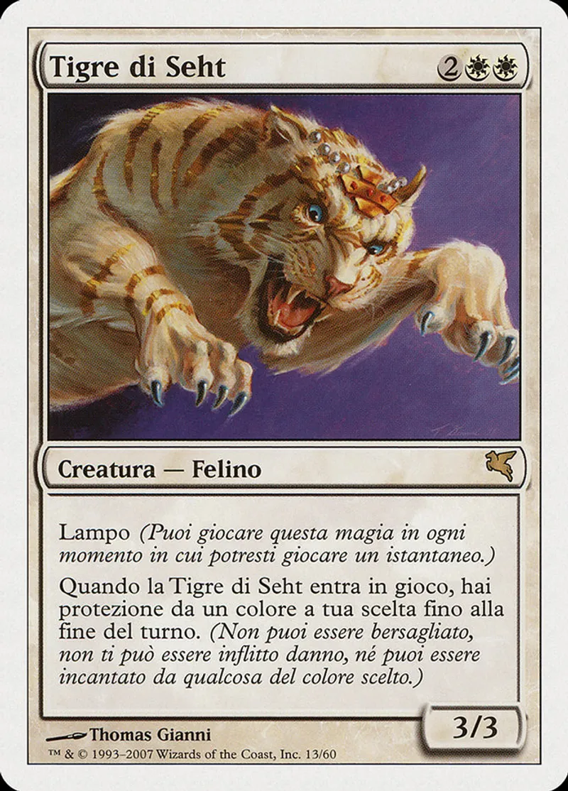 When Seht's Tiger enters the battlefield, you gain protection from the color of your choice until end of turn. (You can't be targeted, dealt damage, or enchanted by anything of the chosen color.) | ||
