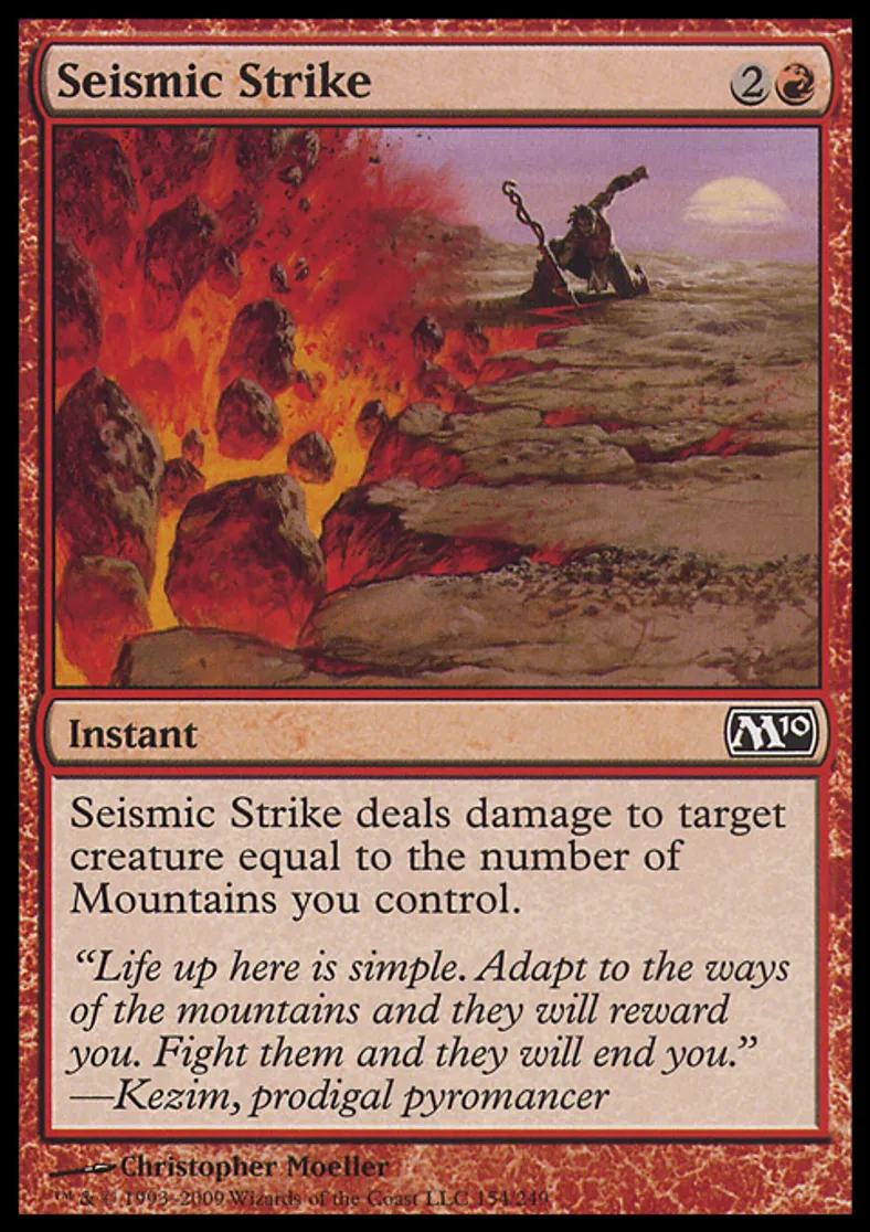 | Oracle Text | Seismic Strike deals damage to target creature equal to the number of Mountains you control. | ||