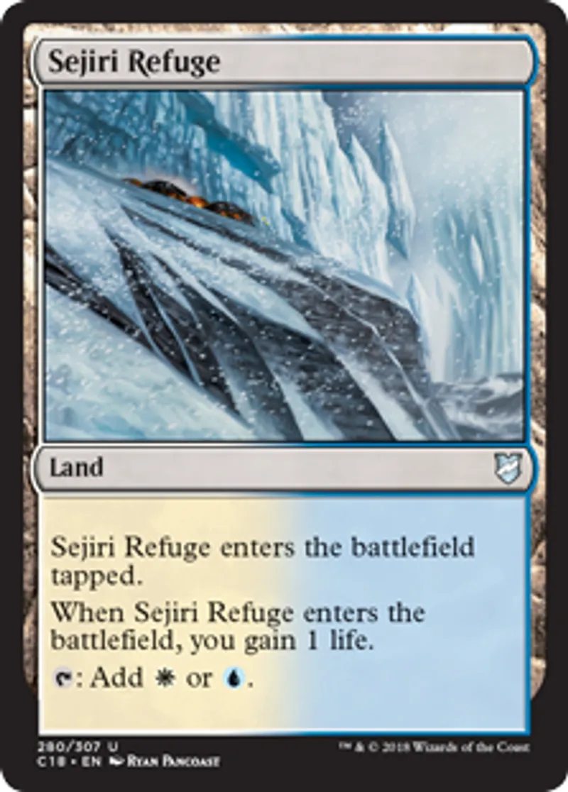| Oracle Text | Sejiri Refuge enters the battlefield tapped. When Sejiri Refuge enters the battlefield, you gain 1 life. {{t}}: Add {{w}} or {{u}}. | ||
