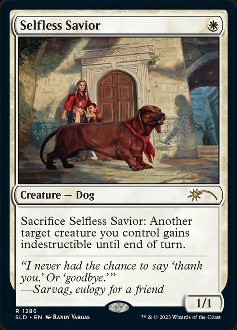 Magic: the Gathering (mtg) Rare Creature — Dog Selfless Savior from Secret Lair Drop Series (SLD) last updated 2026-02-24 14:27:32