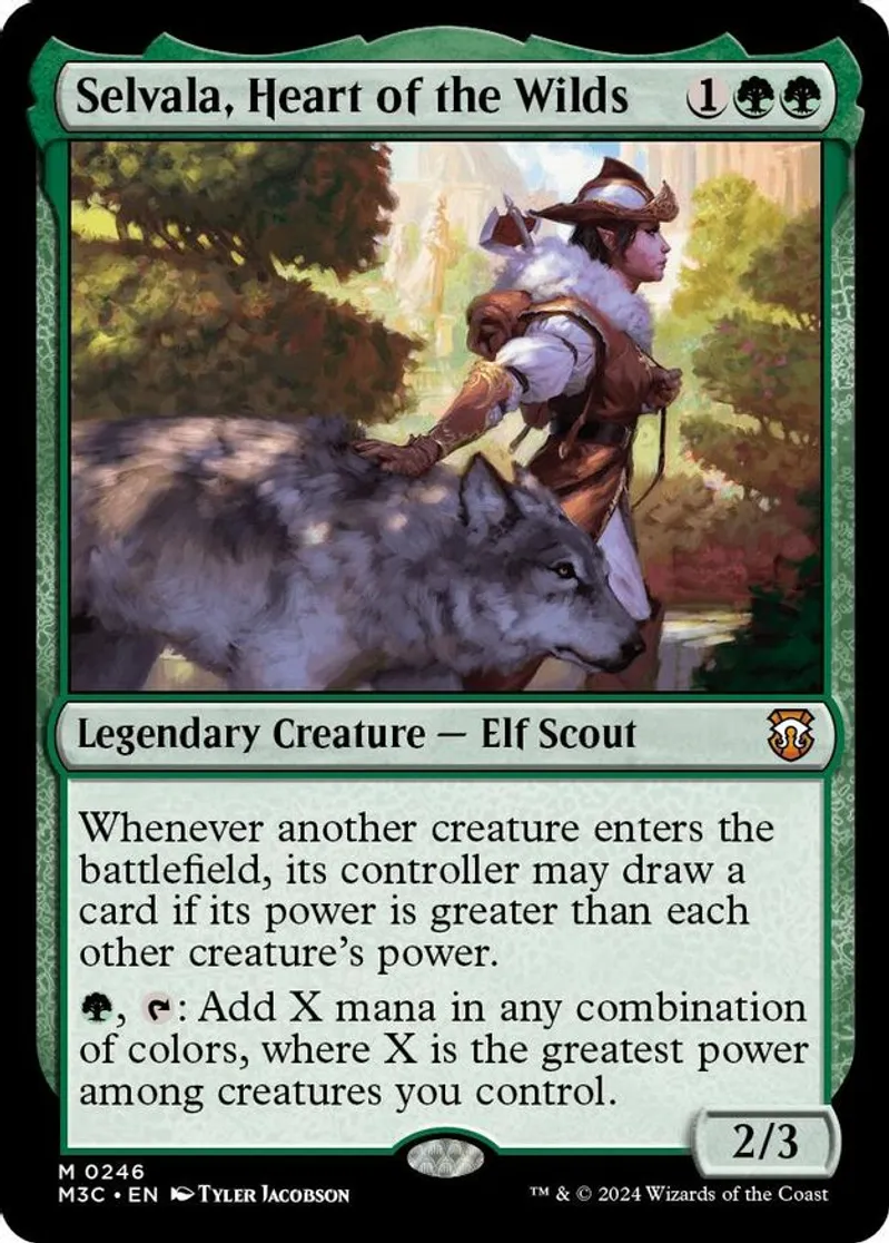 Magic: the Gathering (mtg) Mythic Rare legendary creature — elf scout Selvala, Heart of the Wilds from Modern Horizons 3 Commander (M3C) last updated 2026-02-24 14:19:32