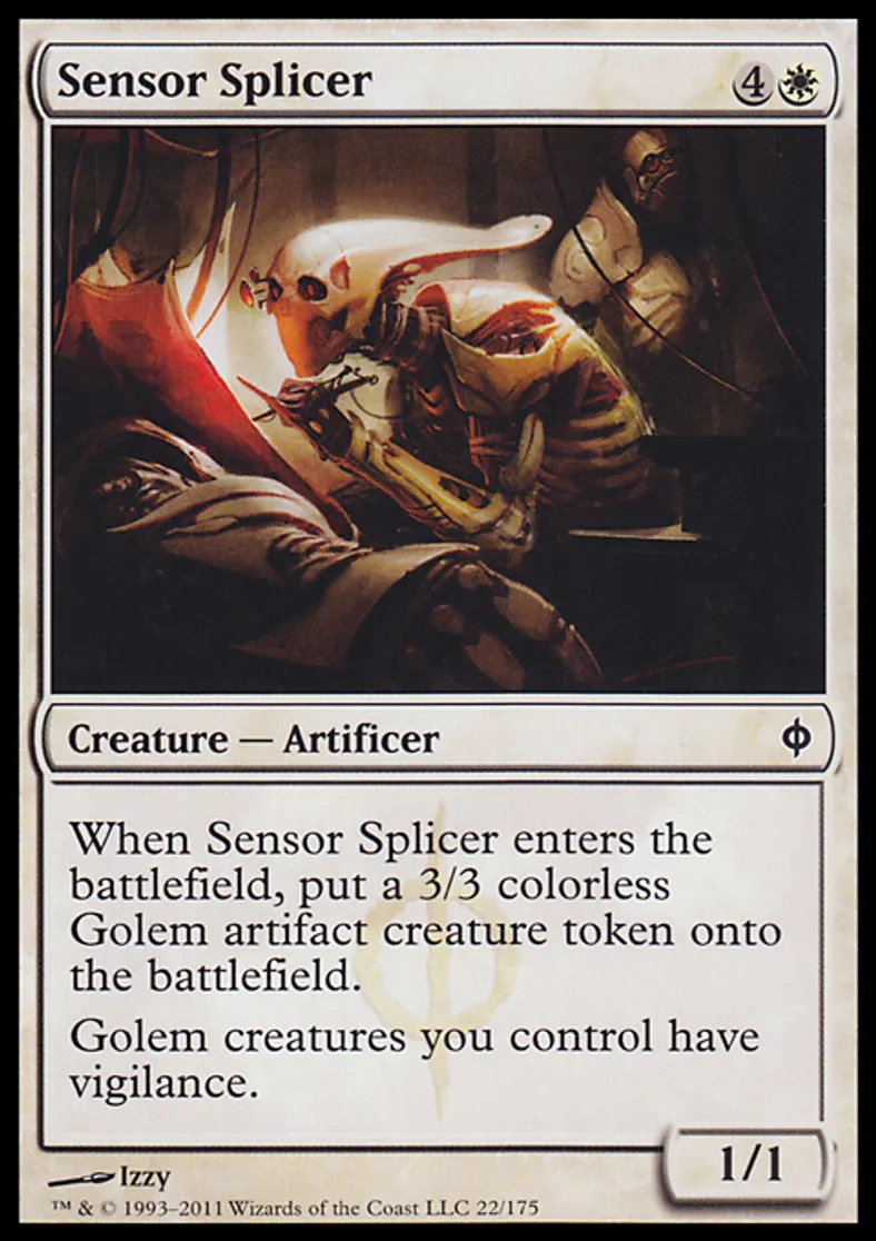 | Oracle Text | When Sensor Splicer enters the battlefield, put a 3/3 colorless Golem artifact creature token onto the battlefield. Golem creatures you control have vigilance. | ||