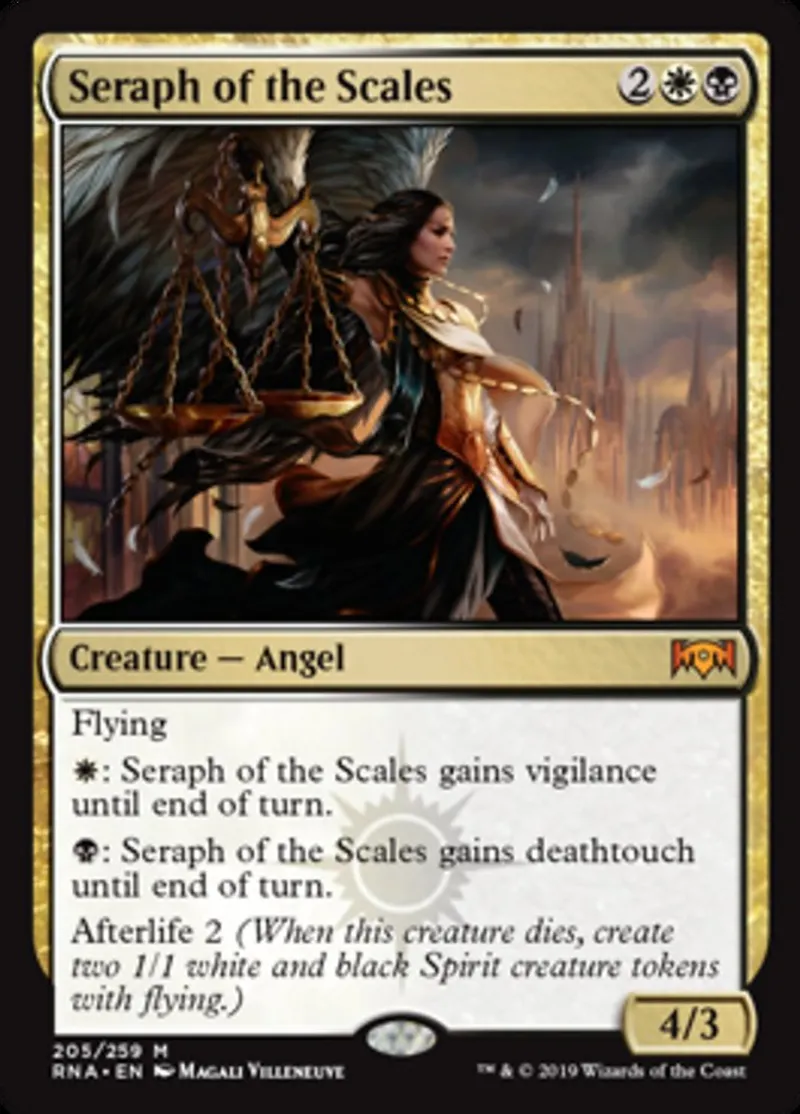 Magic: the Gathering (mtg) Mythic Rare Creature — Angel Seraph of the Scales from Ravnica Allegiance (RNA) last updated 2026-02-24 16:07:32