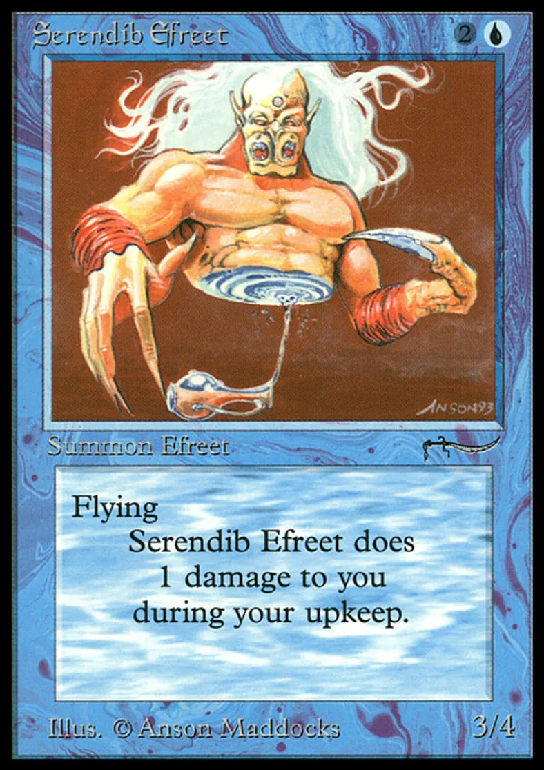 | Oracle Text | Flying At the beginning of your upkeep, Serendib Efreet deals 1 damage to you. | ||