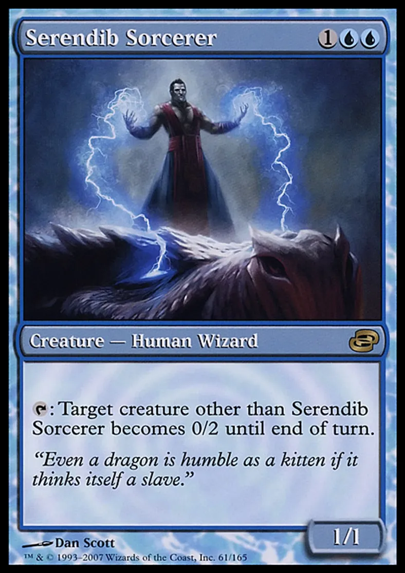 | Oracle Text | {{t}}: Target creature other than Serendib Sorcerer becomes 0/2 until end of turn. | ||