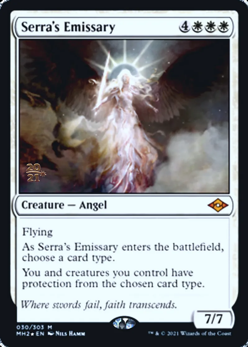 Serra's Emissary is a Mythic Rare in the set Prerelease Cards.
