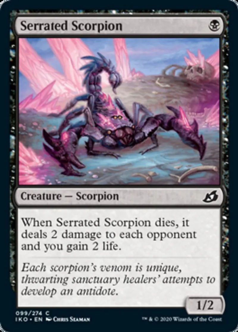 | Oracle Text | When Serrated Scorpion dies, it deals 2 damage to each opponent and you gain 2 life. | ||
