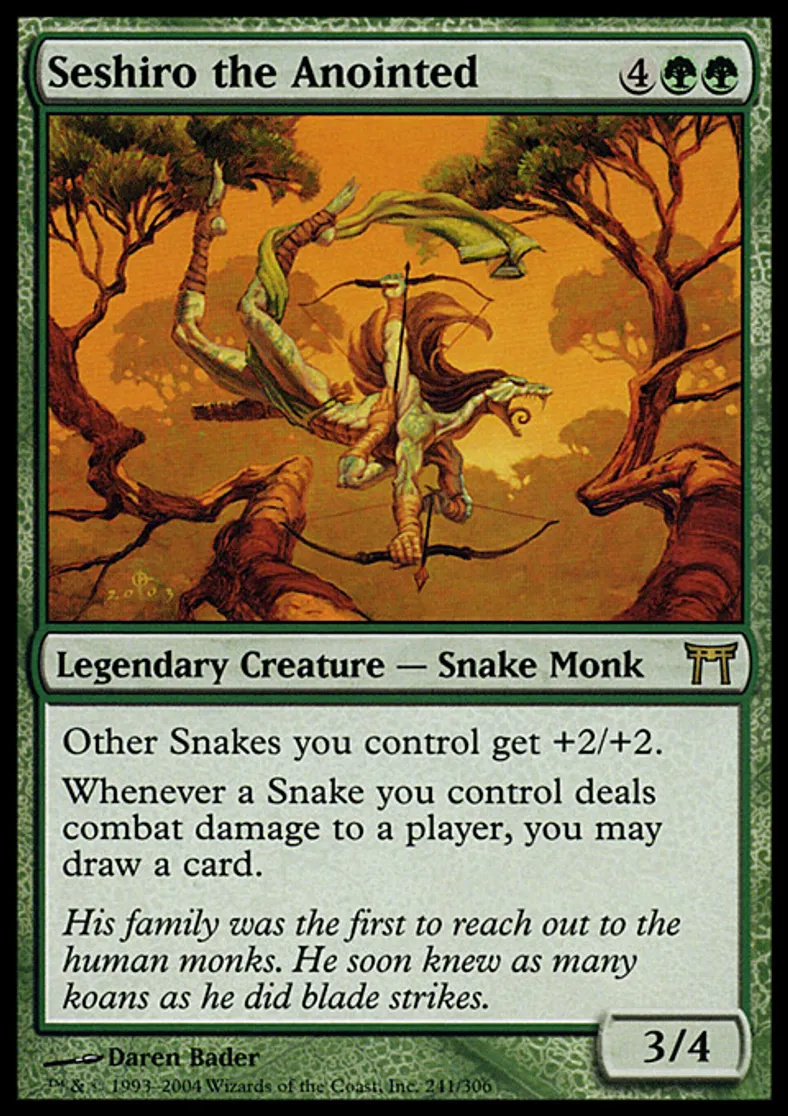 Magic: the Gathering (mtg) Rare Legendary Creature - Snake Monk Seshiro the Anointed from Champions of Kamigawa (CHK) last updated 2026-02-24 15:53:07