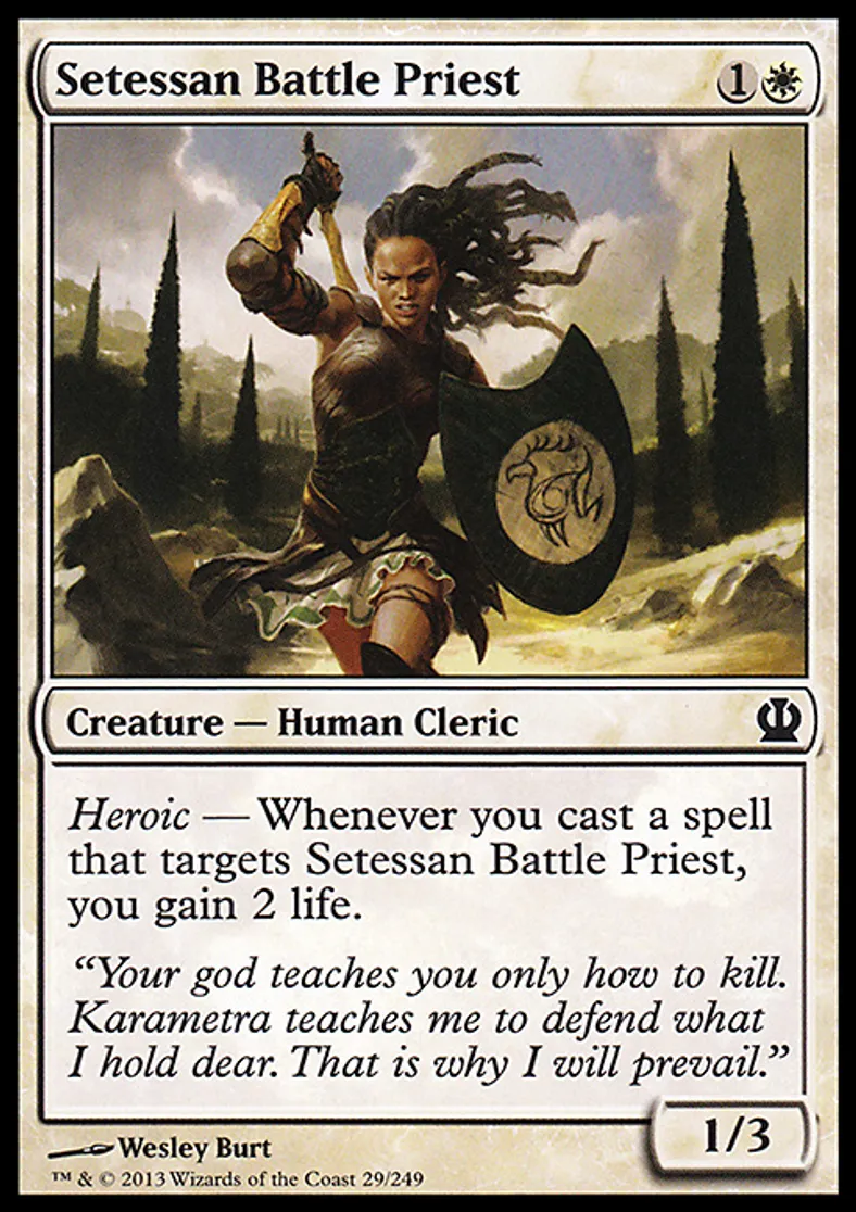 | Oracle Text | Heroic — Whenever you cast a spell that targets Setessan Battle Priest, you gain 2 life. | ||