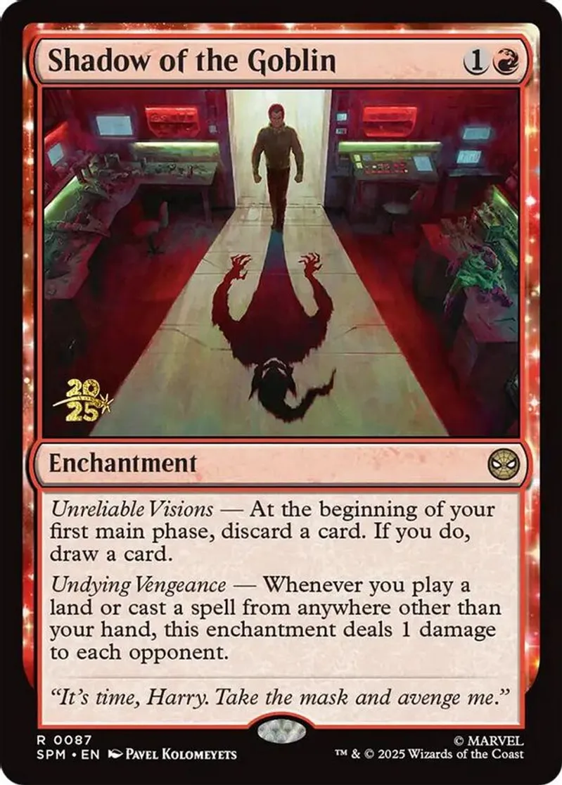 Magic: the Gathering (mtg) Rare enchantment Shadow of the Goblin from Prerelease Cards (pPRE) last updated 2026-01-19 16:06:32