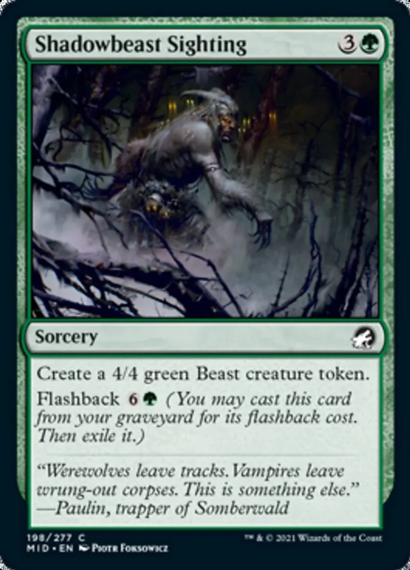 Magic: the Gathering (mtg) common Sorcery Shadowbeast Sighting from Innistrad: Midnight Hunt (mid) last updated 2026-02-21 16:42:02