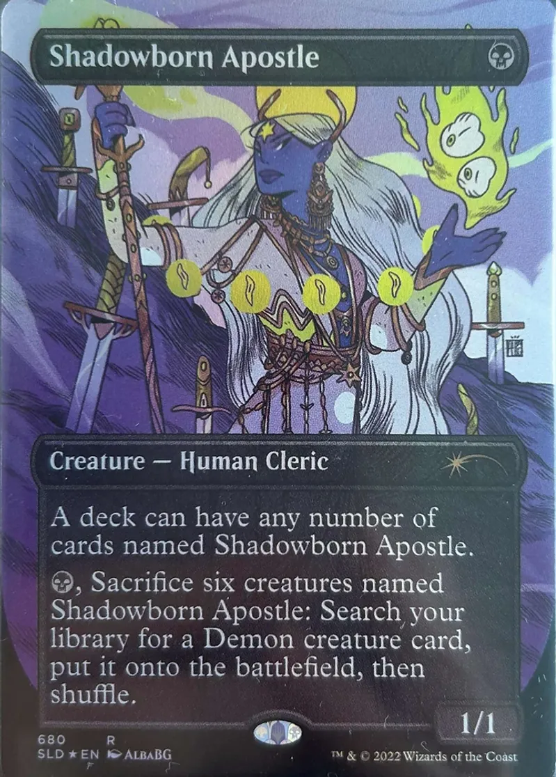 | Oracle Text | A deck can have any number of cards named Shadowborn Apostle.