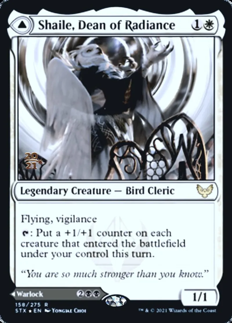 Magic: the Gathering (mtg) Rare Legendary Creature - Bird Cleric Shaile, Dean of Radiance from Prerelease Cards (pPRE) last updated 2026-02-21 16:37:06
