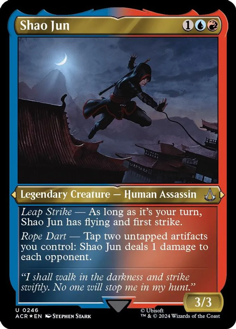 Magic: the Gathering (mtg) Uncommon legendary creature — human assassin Shao Jun from Universes Beyond: Assassin's Creed (ACR) last updated 2025-12-13 15:22:02