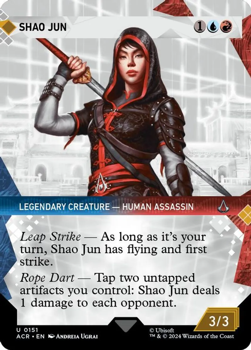 Magic: the Gathering (mtg) Uncommon legendary creature — human assassin Shao Jun from Universes Beyond: Assassin's Creed (ACR) last updated 2025-12-13 15:22:02