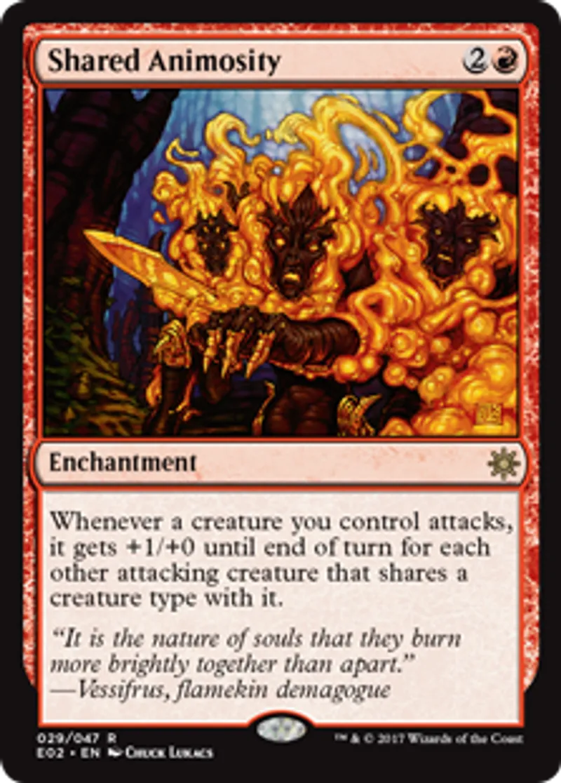 Magic: the Gathering (mtg) Rare Enchantment Shared Animosity from Explorers of Ixalan (E02) last updated 2026-02-24 15:00:02