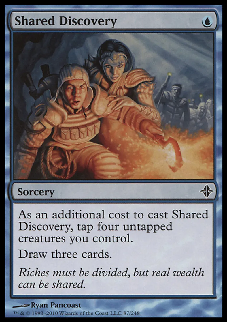 | Oracle Text | As an additional cost to cast Shared Discovery, tap four untapped creatures you control. Draw three cards. | ||