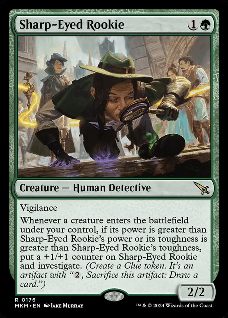 Sharp-Eyed Rookie is a rare in the set Murders at Karlov Manor.
