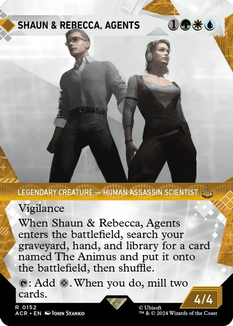 Magic: the Gathering (mtg) Rare legendary creature — human assassin scientist Shaun & Rebecca, Agents from Universes Beyond: Assassin's Creed (ACR) last updated 2026-02-21 15:23:02