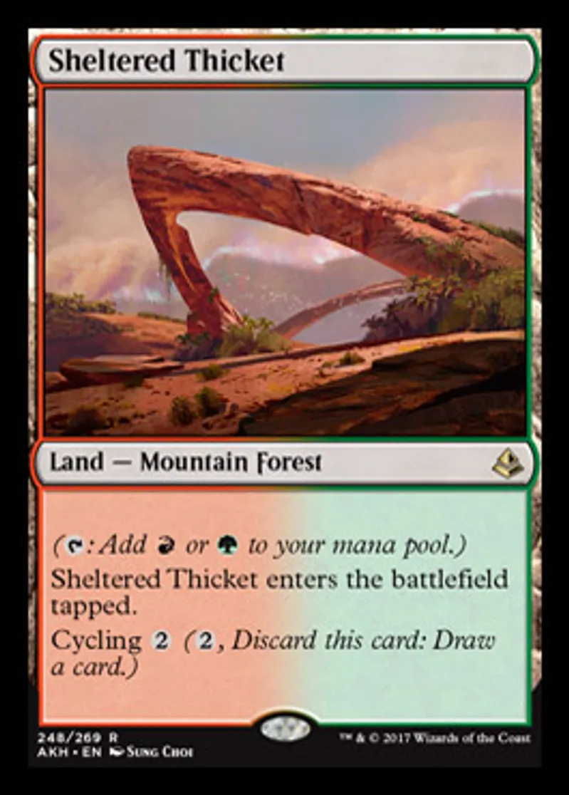 Sheltered Thicket is a Rare in the set Amonkhet.