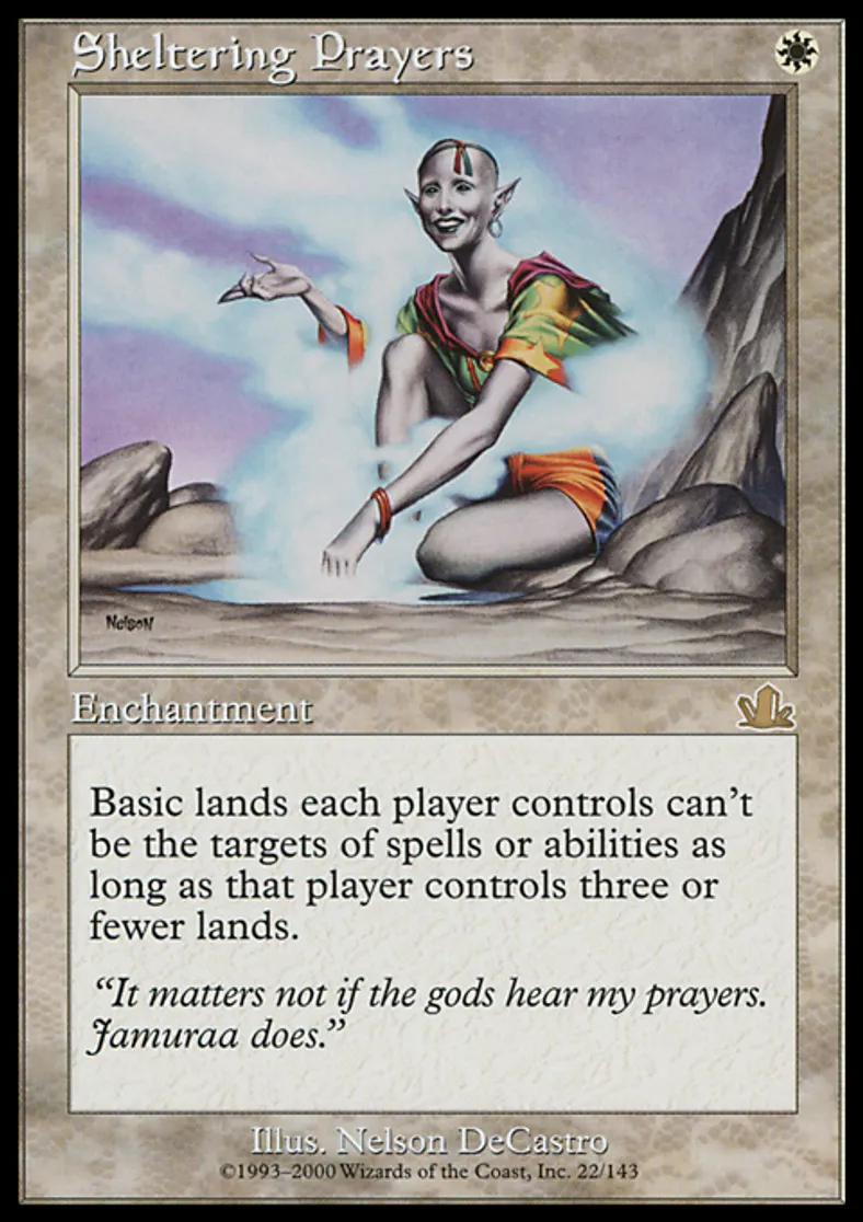 Magic: the Gathering (mtg) Rare Enchantment Sheltering Prayers from Prophecy (PCY) last updated 2026-02-24 15:50:06