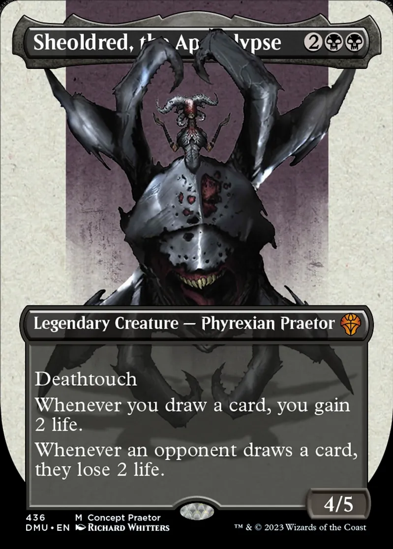 | Name | Sheoldred, the Apocalypse (Concept Praetor) (Step-And-Compleat Foil) | ||