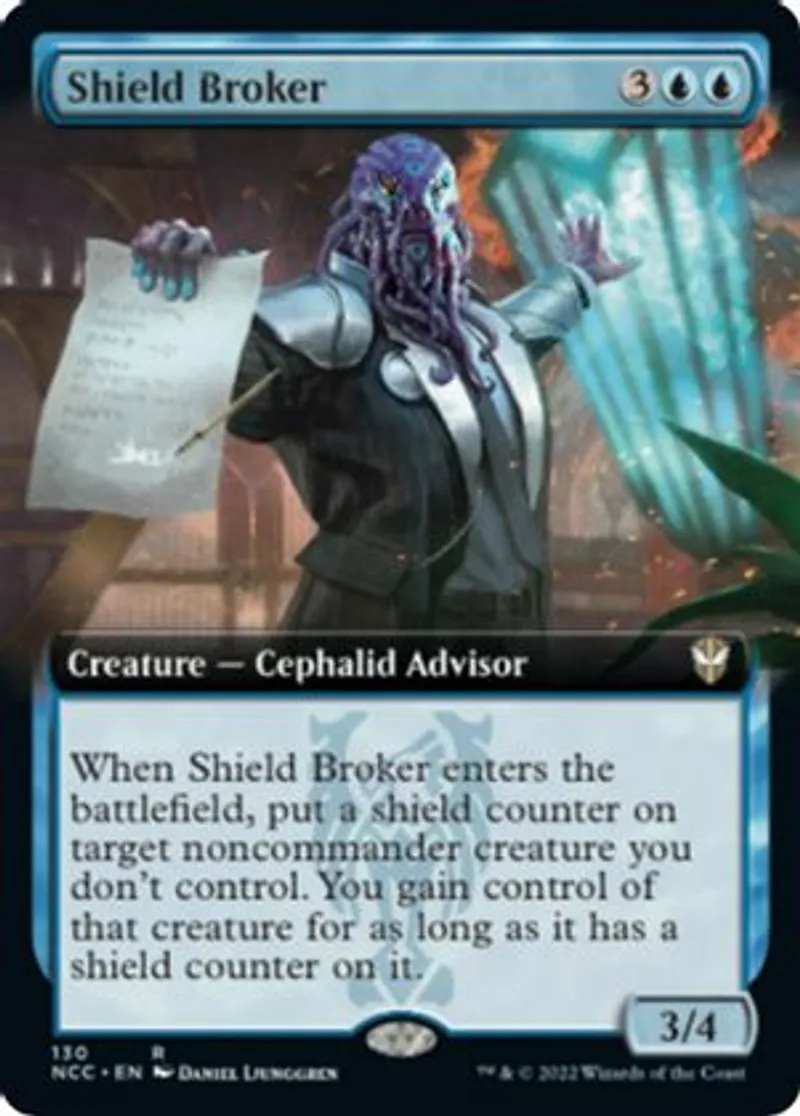 Shield Broker (Extended Art) is a Rare in the set New Capenna Commander.
