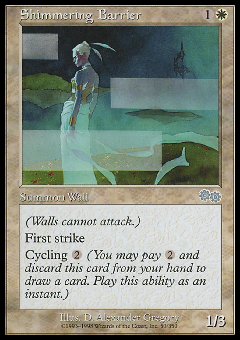 Magic: the Gathering (mtg) Uncommon Creature - Wall Shimmering Barrier from Urza's Saga (USG) last updated 2026-02-24 15:48:03