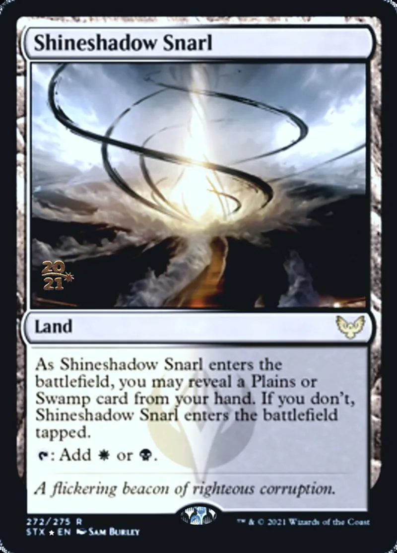 | Oracle Text | As Shineshadow Snarl enters the battlefield, you may reveal a Plains or Swamp card from your hand. If you don’t, Shineshadow Snarl enters the battlefield tapped.